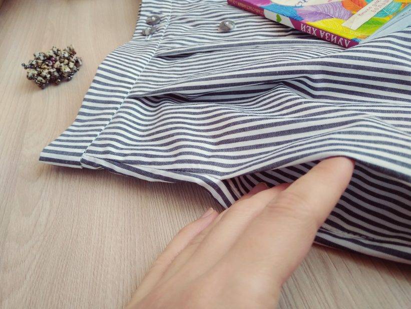 - Проутюжьте готовые карманы на переднем полотне юбки.