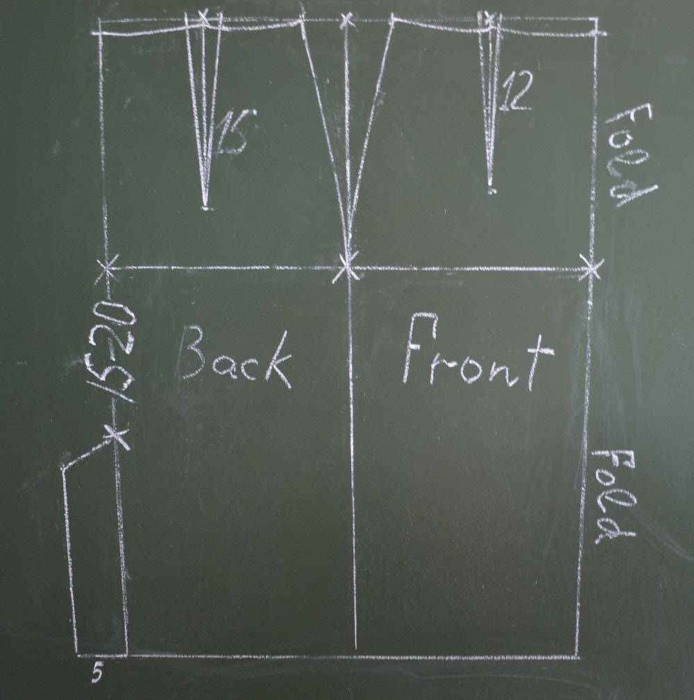 Выкройку нужно построить по начальному чертежу, который называется «сетка». Она как бы определяет то пространство, в котором будет работать закройщица. Наносятся самые основные размеры, а потом уже, на этой сетке карандашом вычерчивается выкройка.