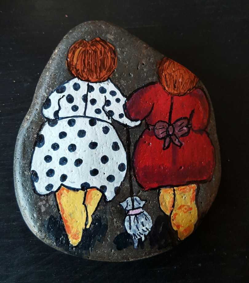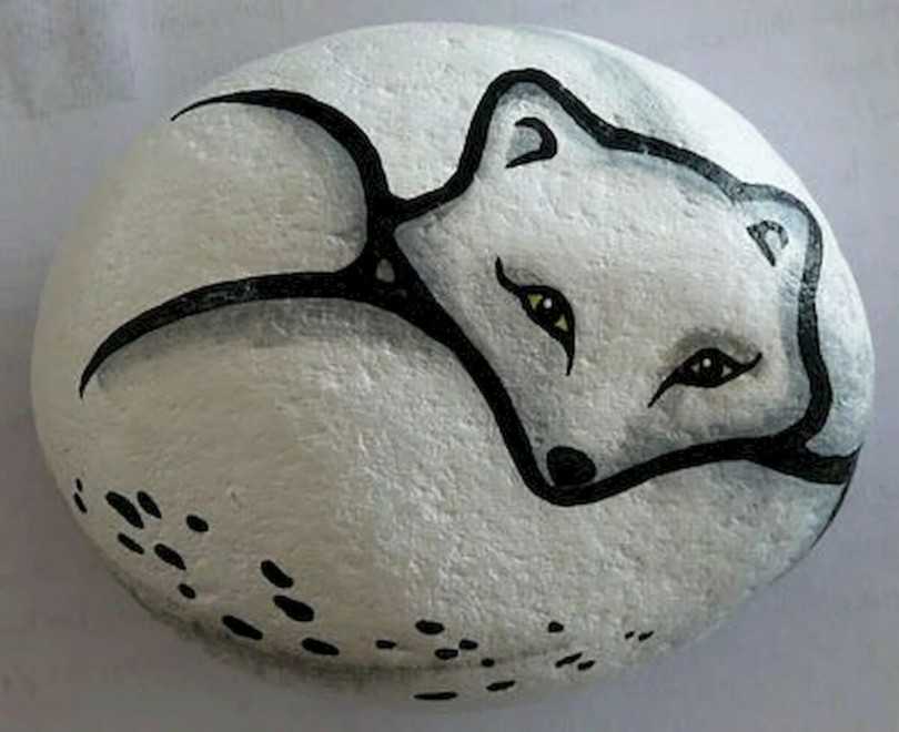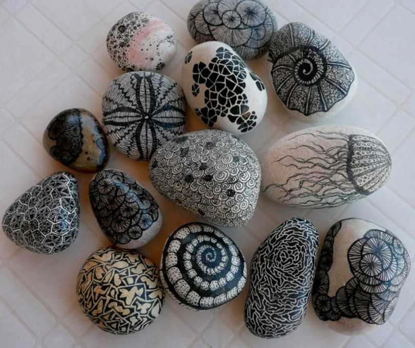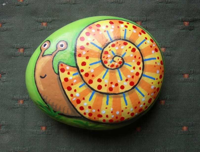 - Раскрасьте чёрным цветом остальные части камня и нарисуйте точки.