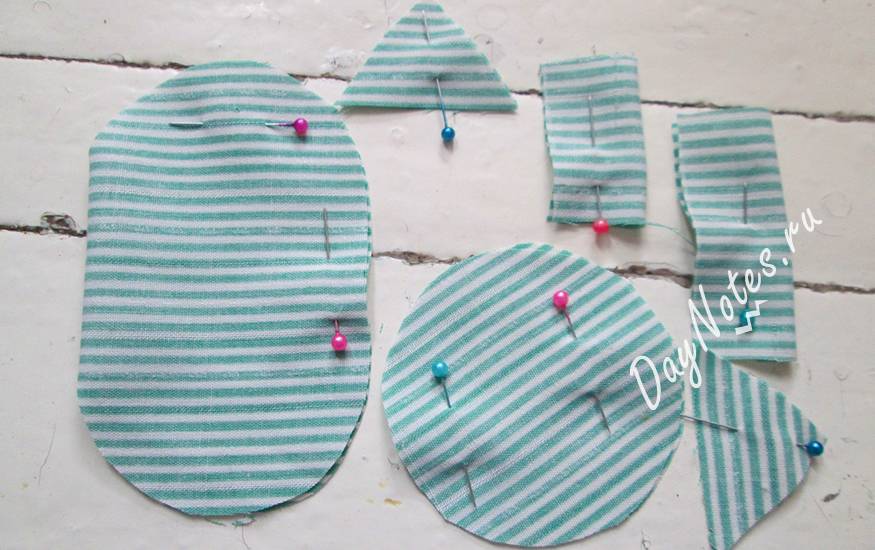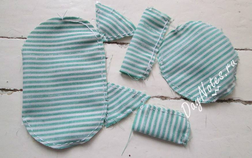 - Затем детали сшиваются на 95%, чтобы остались вырезы для наполнения;