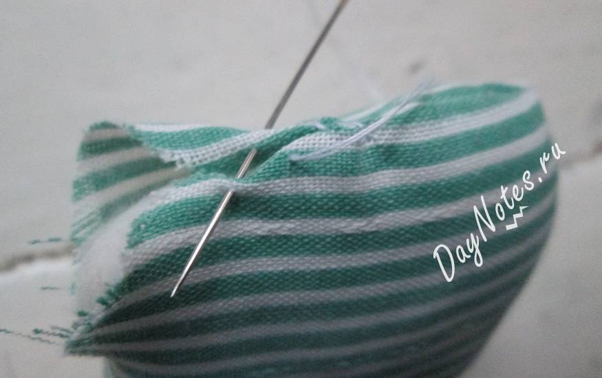 - Сшиваем две детали вручную, оставляем небольшое отверстие для набивки.