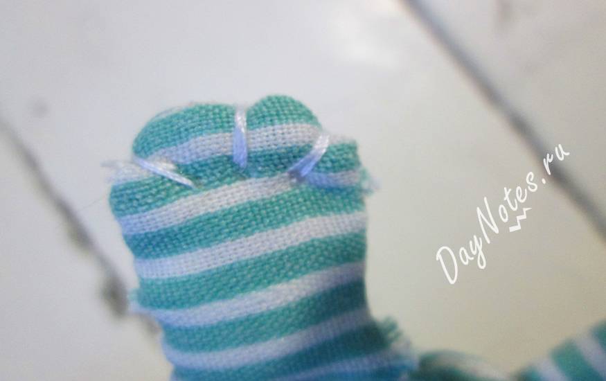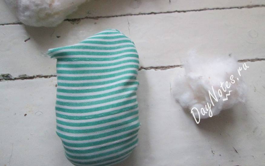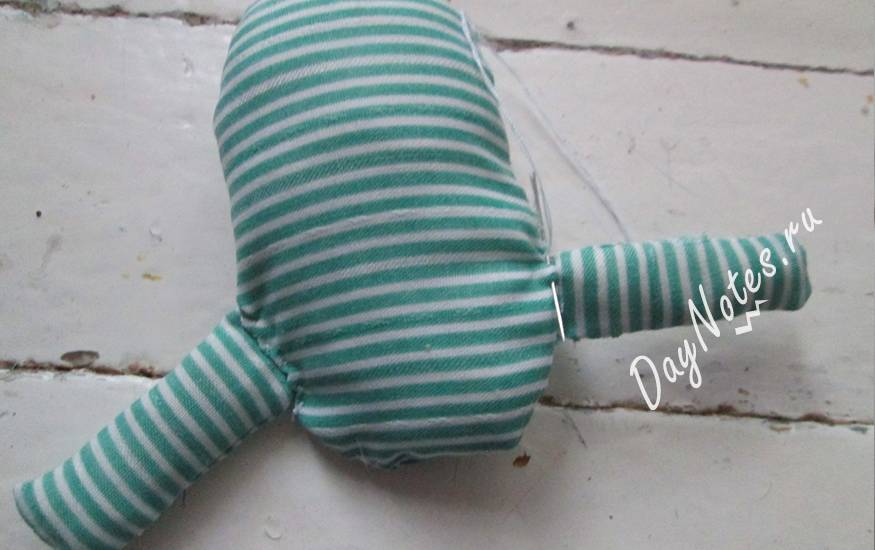 - Выворачиваем туловище, набиваем ватой или синтепоном, зашиваем отверстие потайным швом.