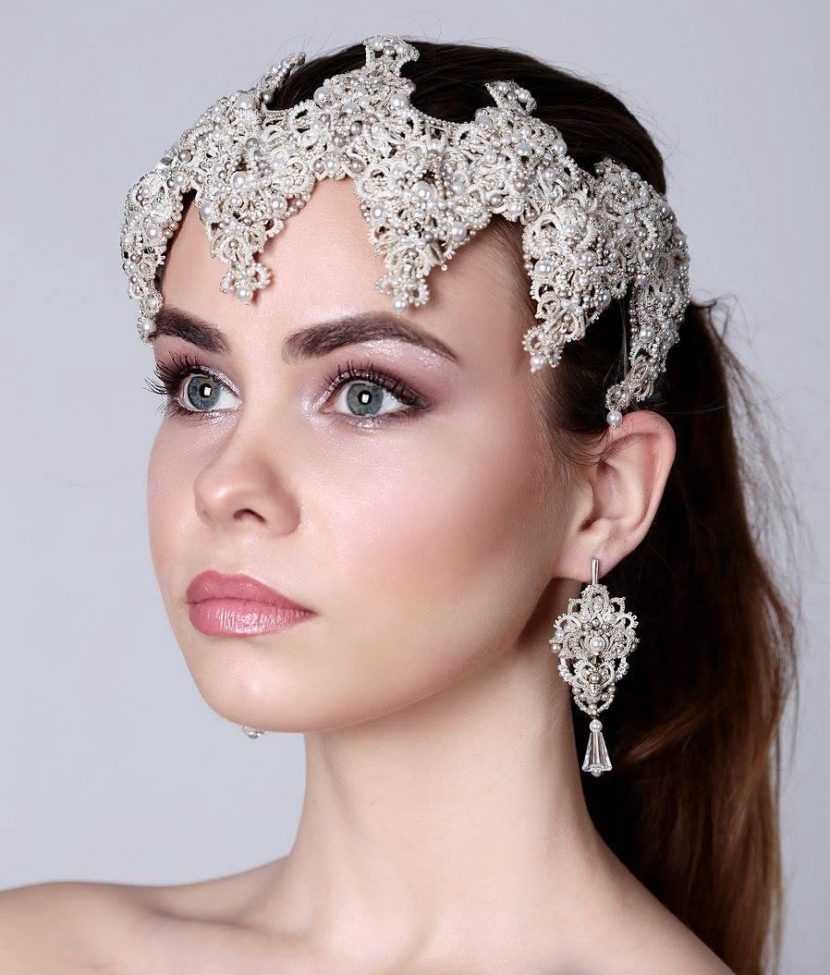 Воздушное свадебное колье ручной работы с бисером и жемчугом создано для невесты Ольги.