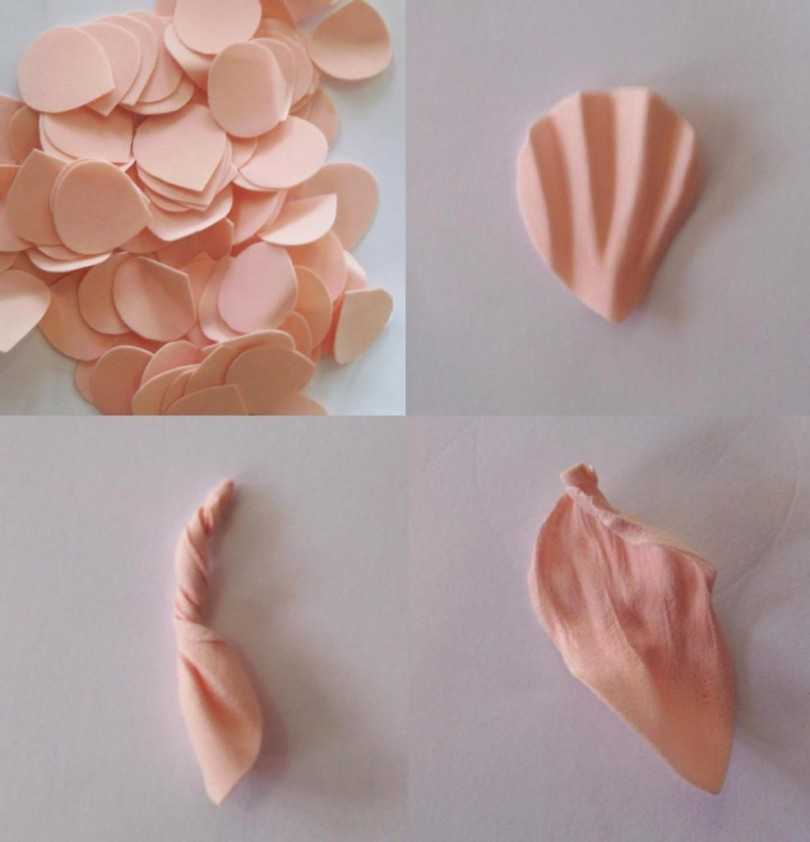 - При желании можете сразу делать лепестки для цветов разных оттенков, особенно если впоследствии вы планируете сделать букет.