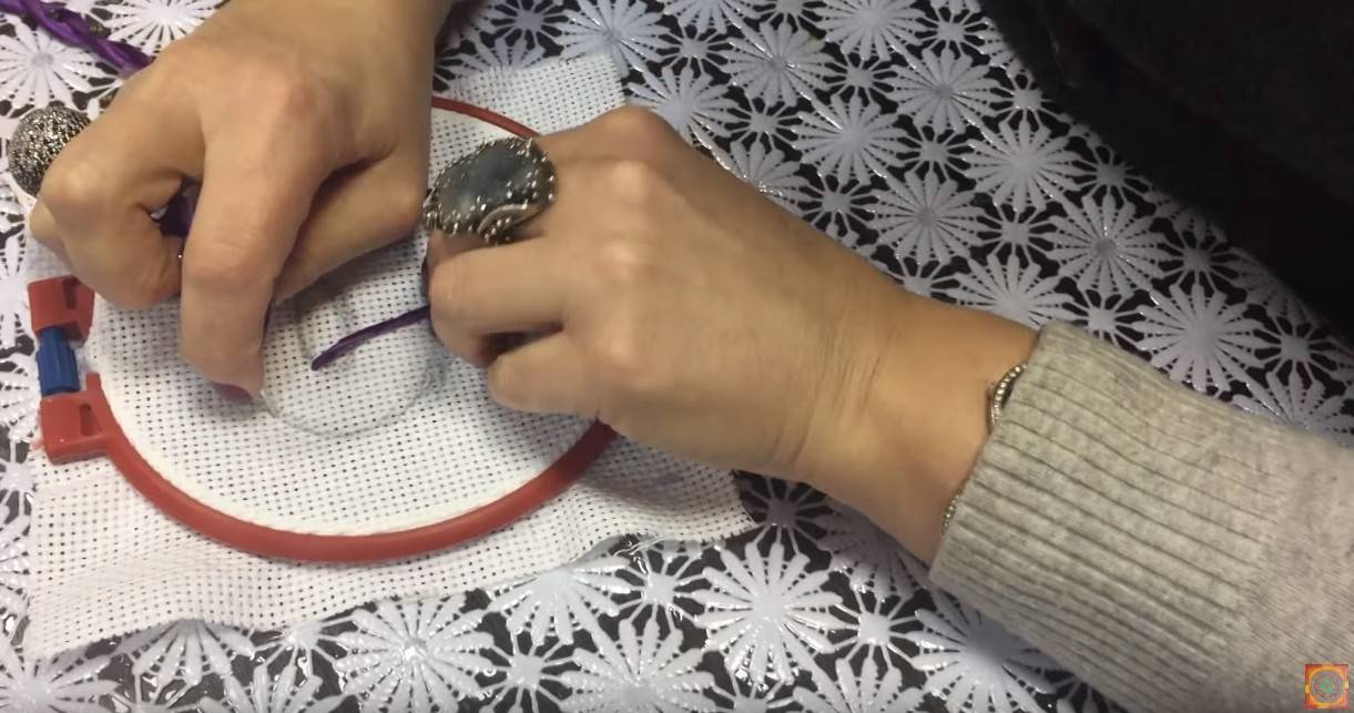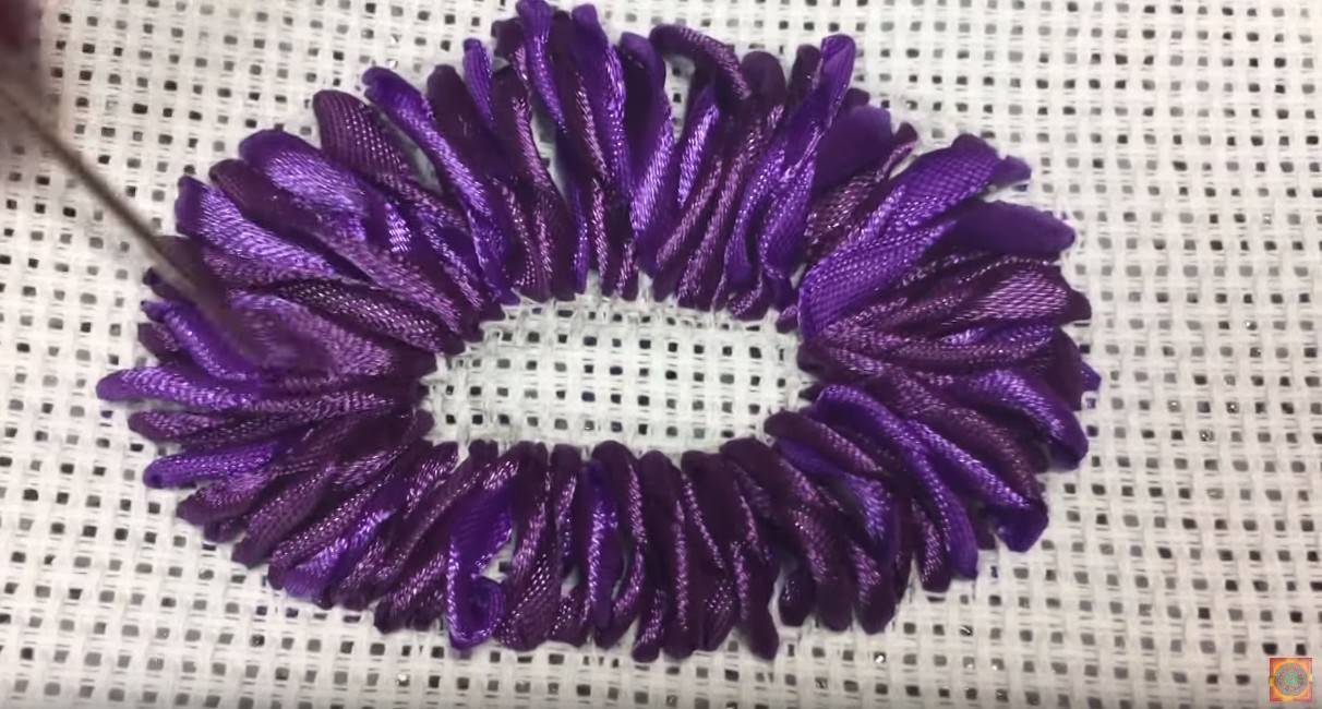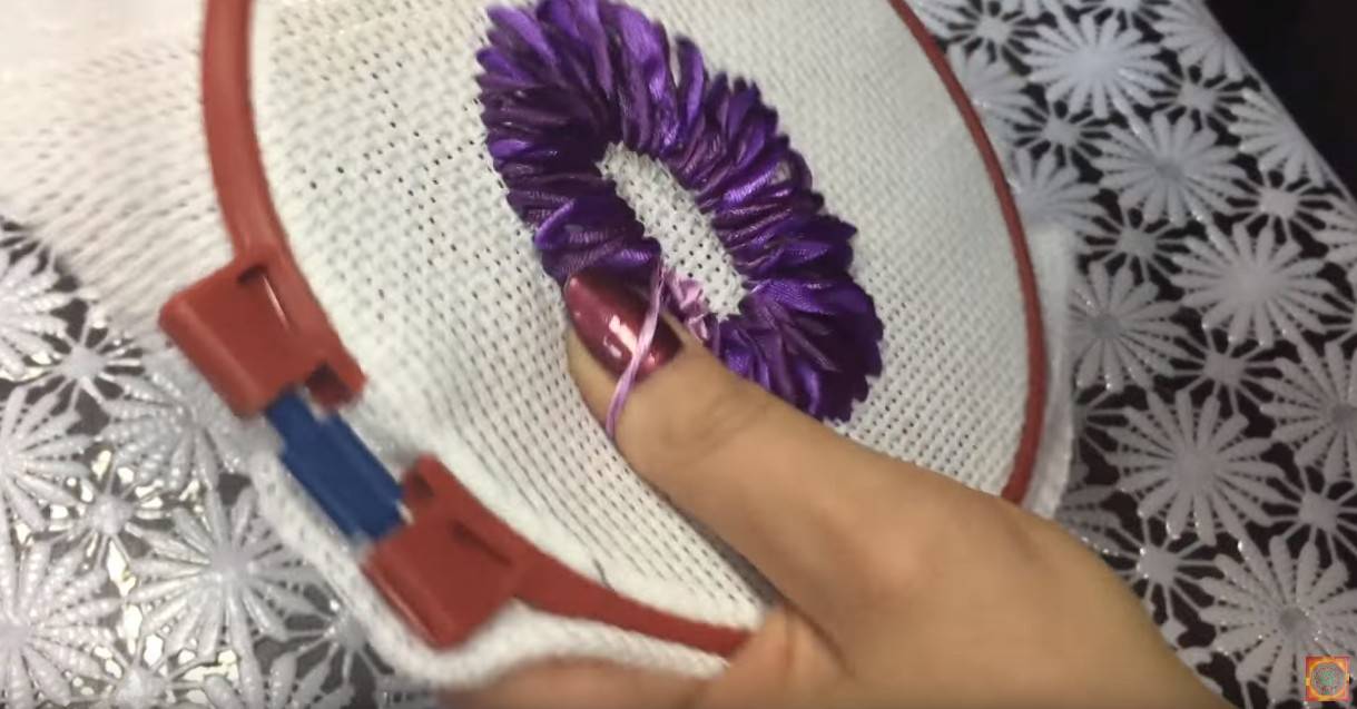 Если роза будет использоваться в вышитой работе, то ниточку не обрезаем, а пришиваем ею цветок несколькими стежками к ткани.