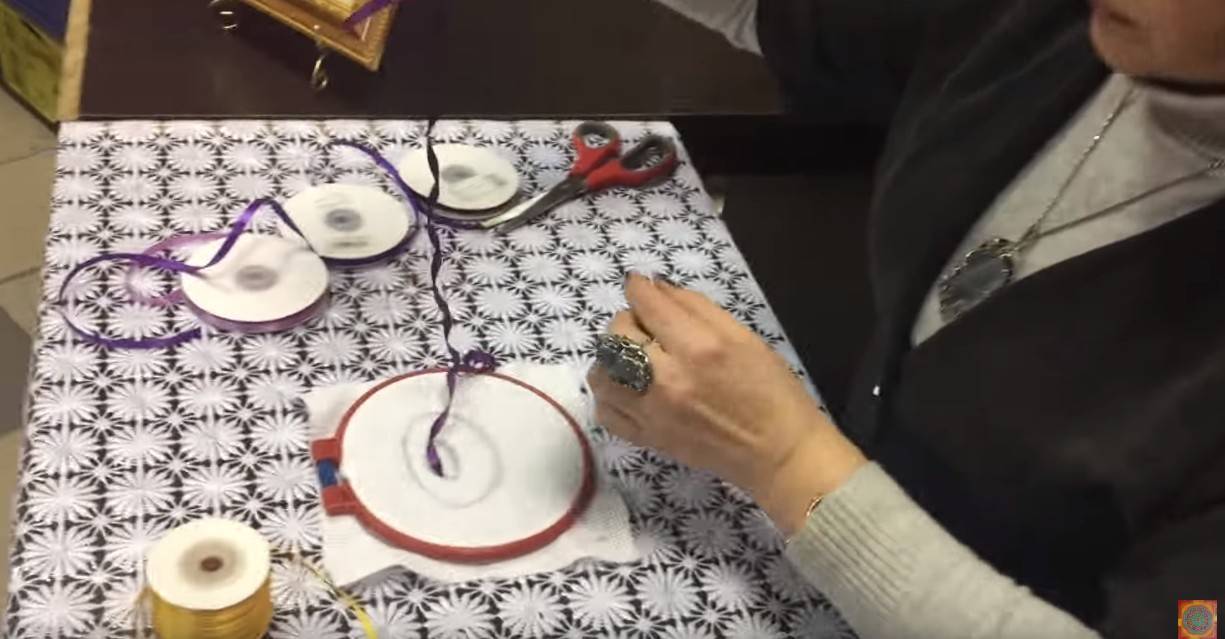 Чем больше оборотов мы делаем, чем больше становится диаметр розы, тем дальше от центра будет нижний край ленты и тем дальше нужно делать закрепку.