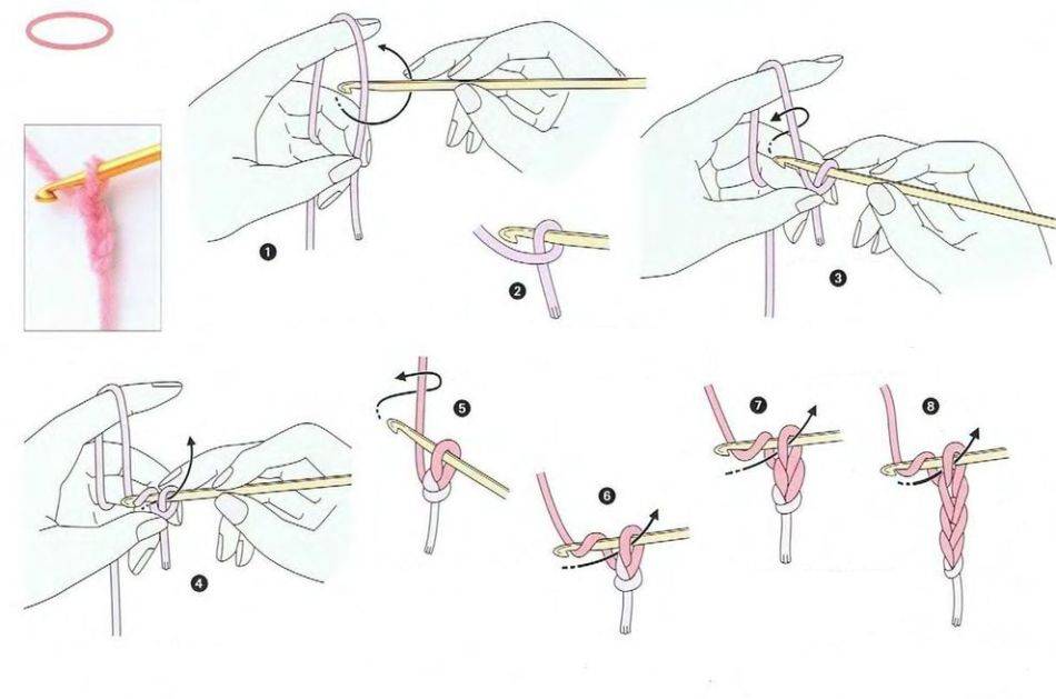 Схема вязания цепочки из воздушных петель: