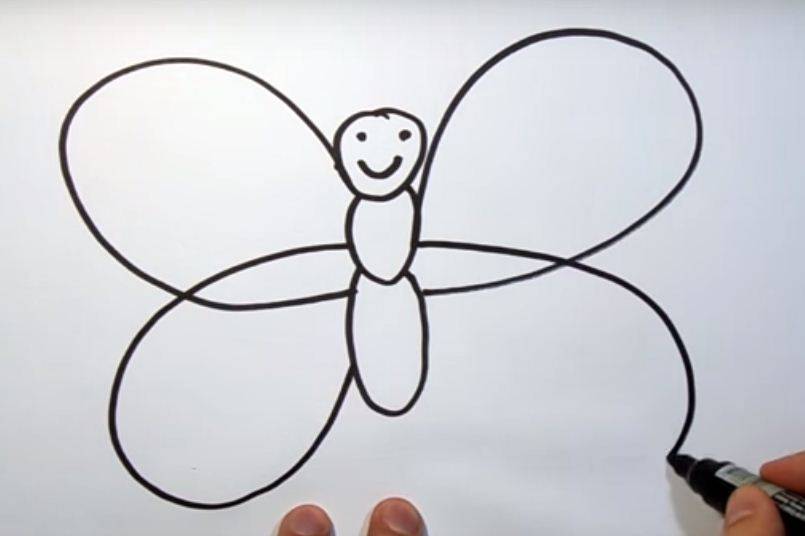 И в завершение рисуем крылышки. Сначала верхнюю часть, а затем нижнюю.