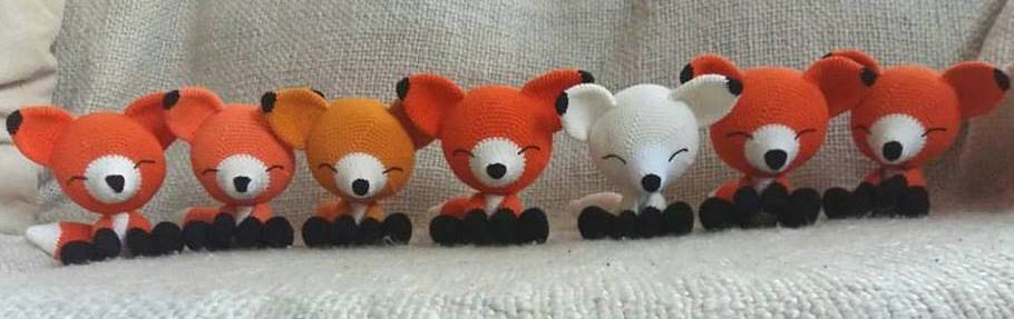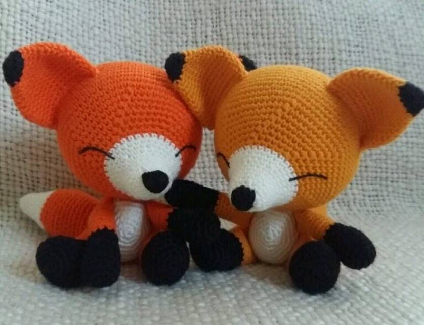 В отличие от многих других игрушек-зверят, которые будут выгодно смотреться в любом цвете, для лисички лучше подобрать естественные оттенки оранжевого и белого. В отличие от обезьяны, схема лисенка немного сложнее, т.к. требуется связать характерный вытянутый нос и хвост обтекаемой формы. Тем не менее, если строго следовать схеме, никаких проблем возникнуть не должно.