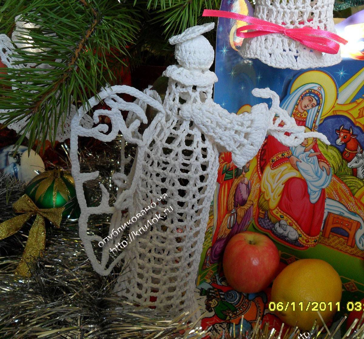 Ангел крючком, работа Анны Ратовой Размер ангела: высота ок. 20 см. Материалы: пряжа (100% х/б), ок. 30 г белой, крючок № 1,5.