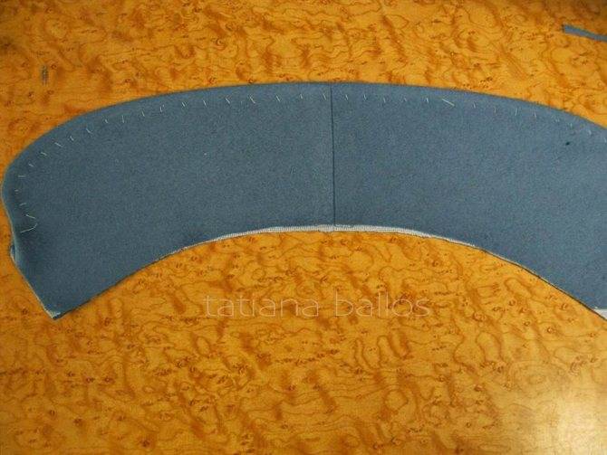 - Полученный нижний воротничок стачается по нижнему шву, который предварительно тщательно проглаживается.