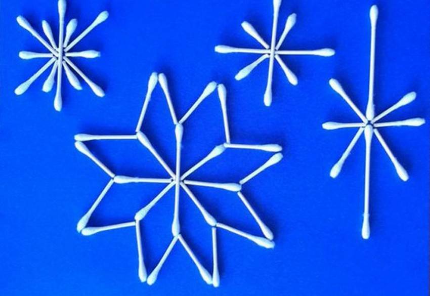 Итак, простые поделки из ватных палочек получаются путем комбинирования композиции из палочек разной длины. Например, сложите крест-накрест две целые палочки и скрепите их.