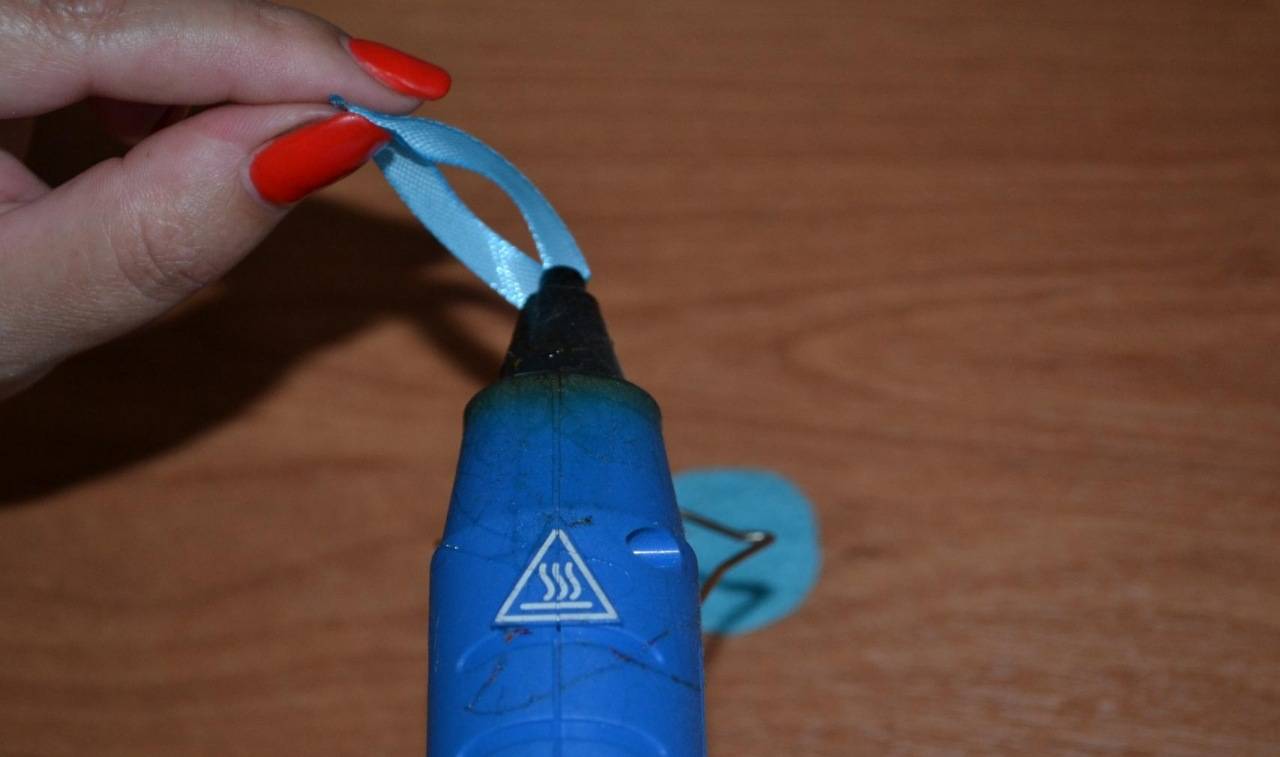 Переверните готовый аксессуар, с помощью пистолета закрепите на фетре резинку.