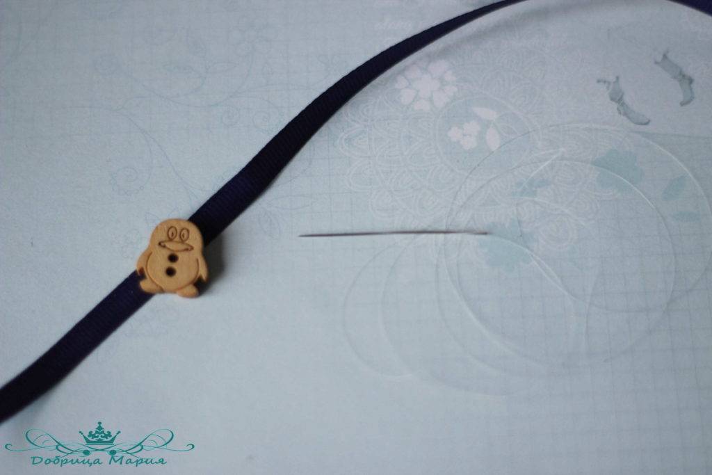 - Петлёй накиньте на неё маленькую ленточку, чтобы края были справа.