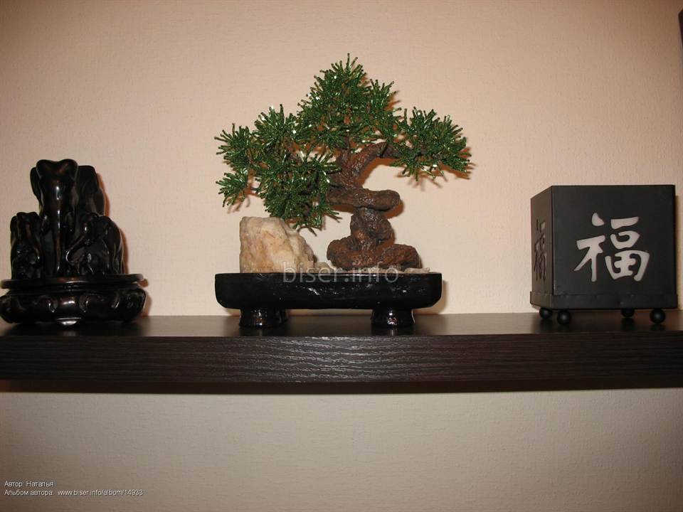 Посмотрите в интернете мастер-классы с пошаговыми фотографиями по украшению бонсай из бисера.