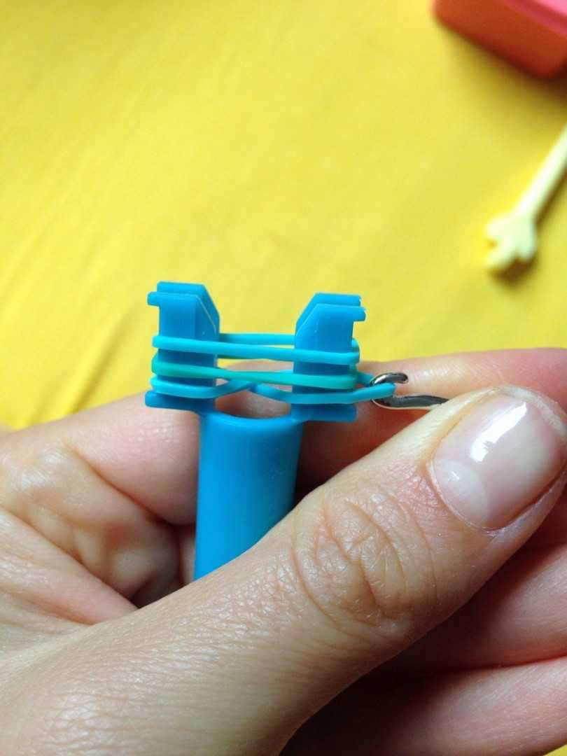 - Снимаем с помощью крючка самую нижнюю резинку и кладем в кладовку.
