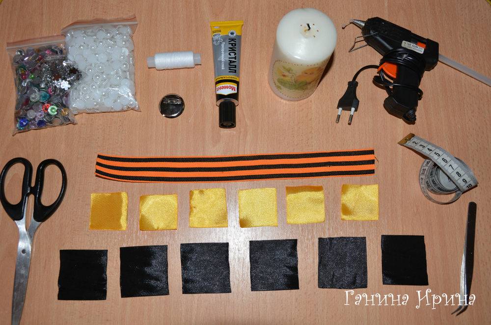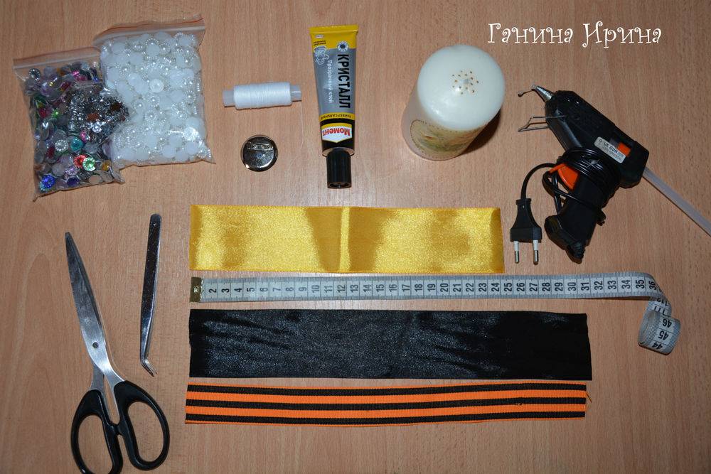 - георгиевскую ленточку — примерно 30 см в длину;