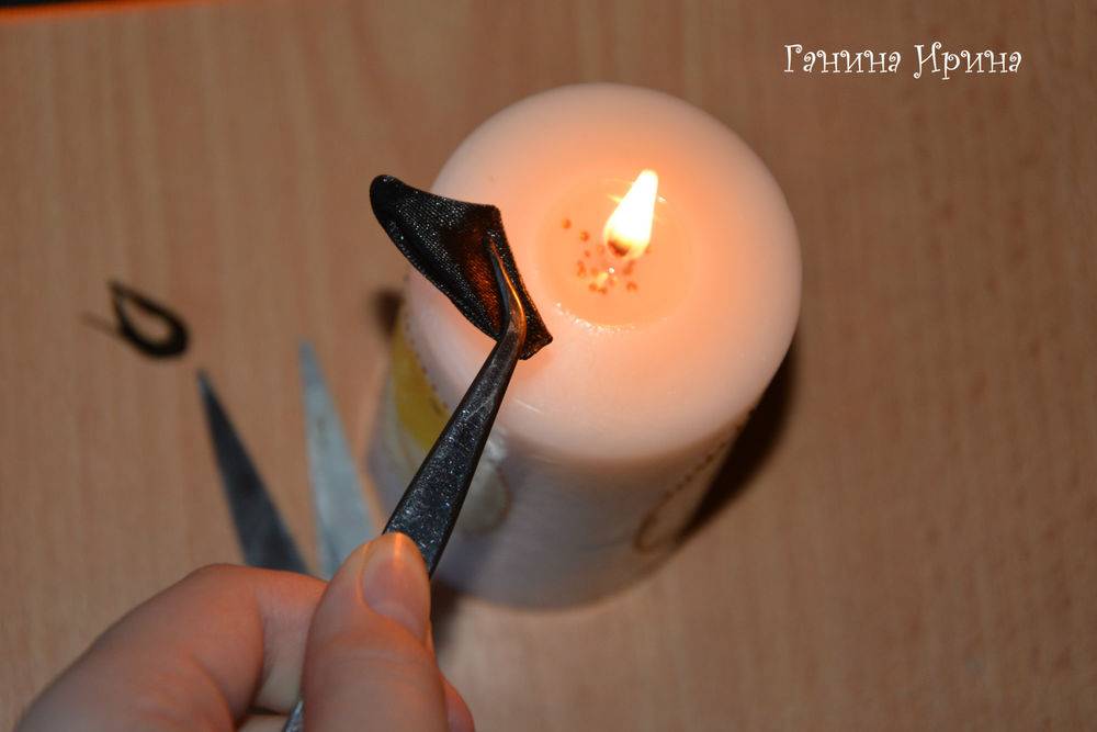 Также нужно будет взять клей, ножницы, свечу, пинцет для канзаши.