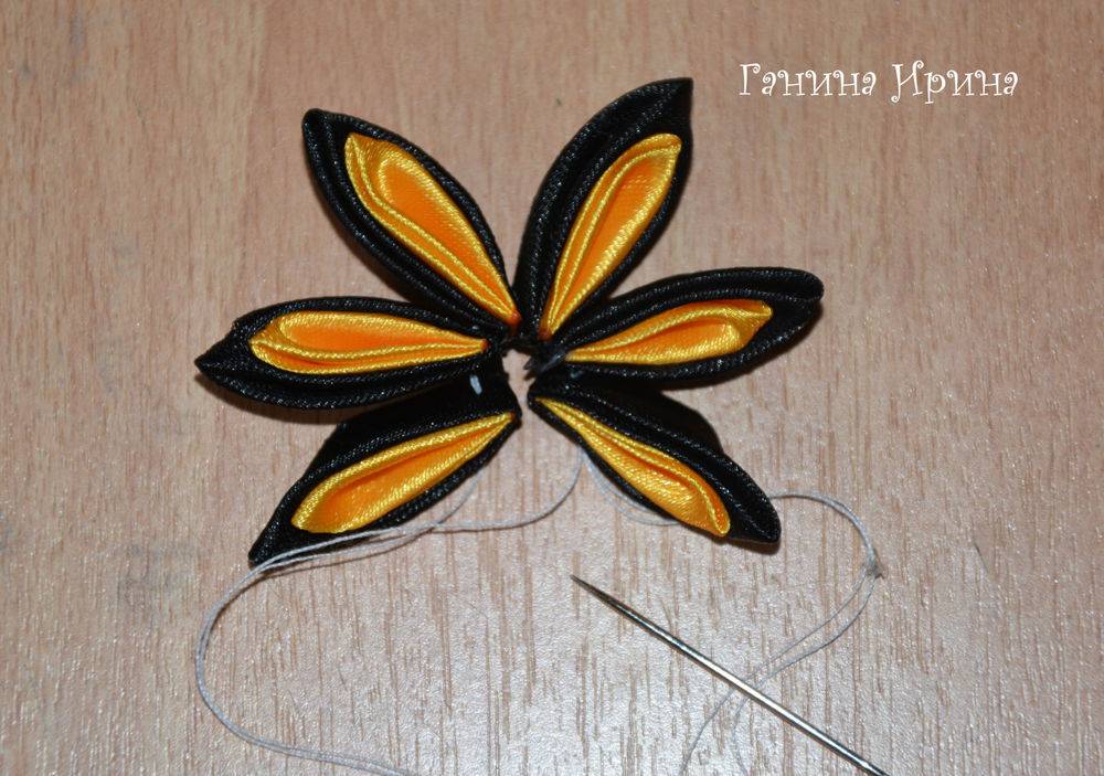 - черную и оранжевую атласные ленточки шириной около 5 см — семь частей по 5 см в длину;