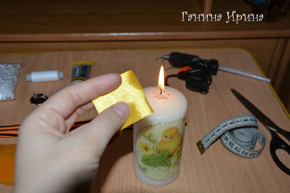 1. Отмерьте ленту длиной 24 см. Края обработайте огнем.