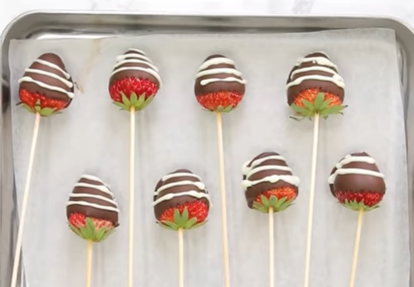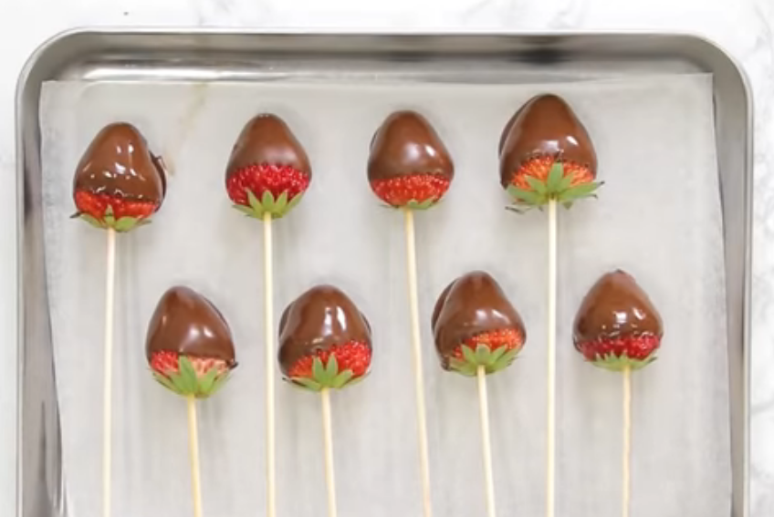 - Подготовьте сразу шпажки для накалывания ягодки.На пару растопите шоколад или сделайте сахарную глазурь.