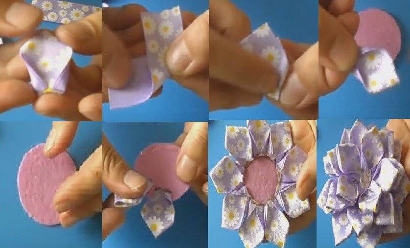 Нужно нарезать 21 штуку нарезок из ленты по 7 см. длиной и 2,5 в ширину; Загнуть нижние края ленты на себя, как показано на картинке