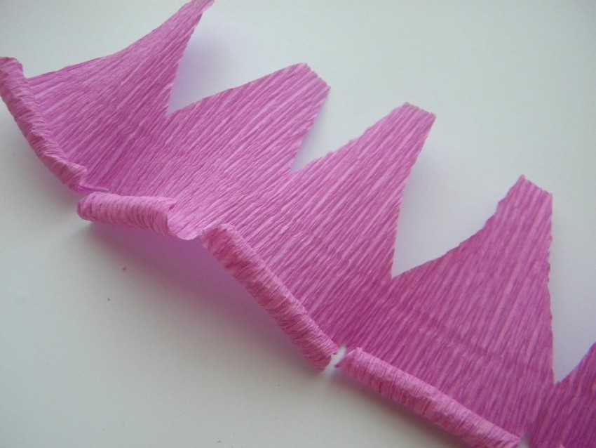 - Вырезаем из розовой гофрированной бумаги квадратики размером 8х8 см.;