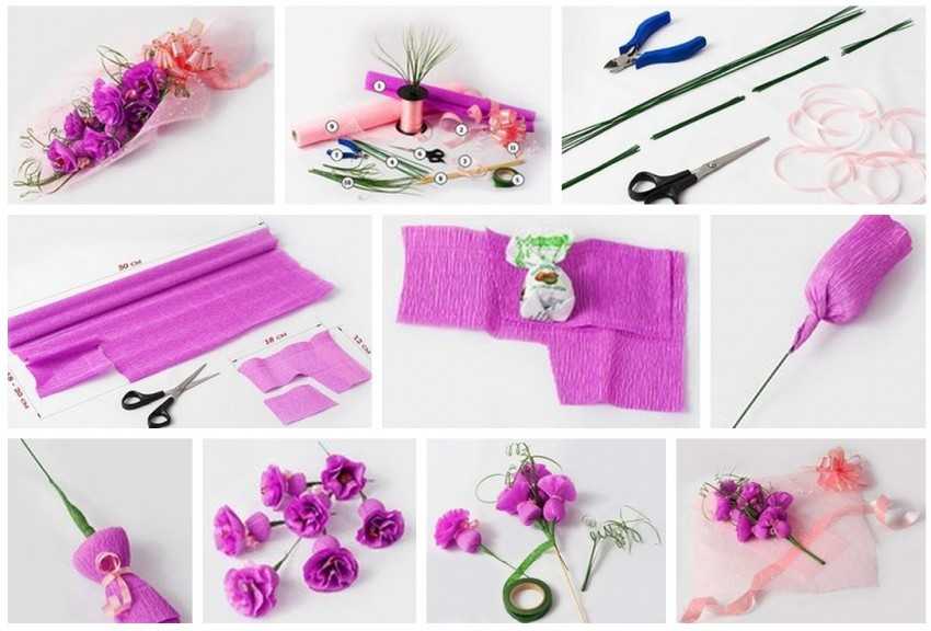 Букет из конфет и гофрированной бумаги с пошаговыми фото