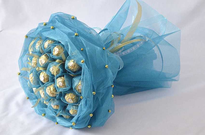 За сладкий букет в специализированных магазинах могут взять приличную сумму денег, поэтому для тех, кто владеет хотя бы начальными навыками рукоделия, есть вариант смастерить съедобное чудо самим.