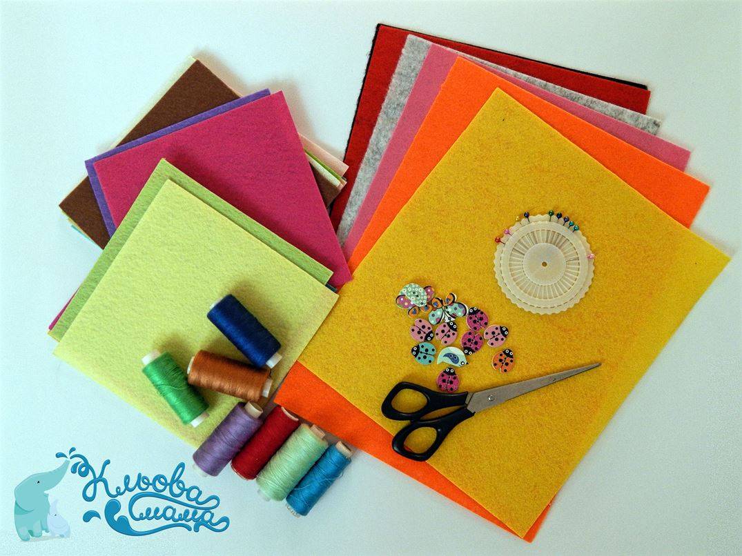 - Фетр толщиной 1-2 мм основного цвета для изготовления тельца, фетр других цветов для накладок.