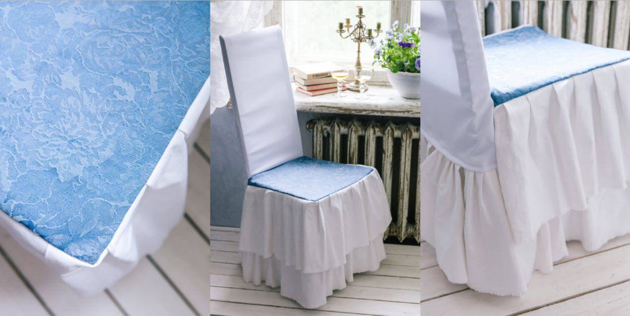 Такие накидки обычно делаются сплошными, они закрывают стул целиком до пола. Для этого используется такой элемент, как «юбка». Чтобы чехол получился действительно праздничным и украшал интерьер, а не портил его, нужно сшить его правильно. Рекомендации по изготовлению: