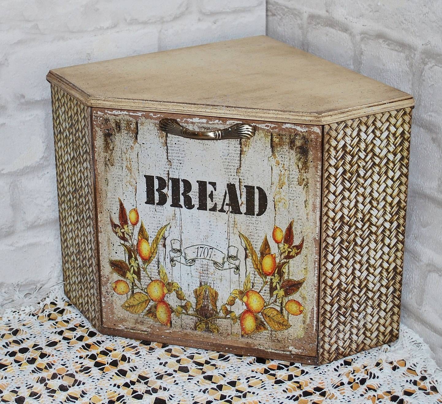 Винтажная хлебница, сделанная вашими руками в технике декупаж, может стать излюбленной кухонной вещью хозяйки нового жилища.