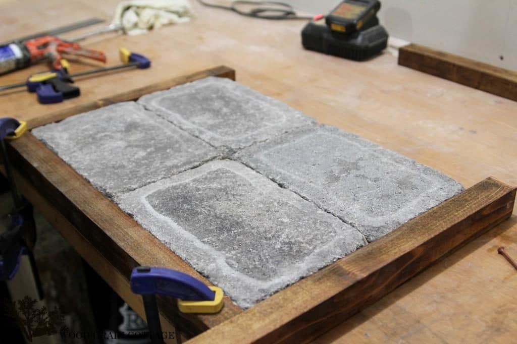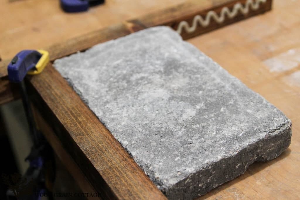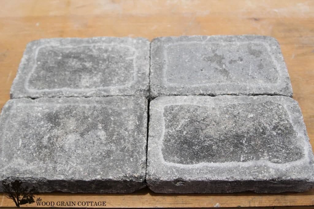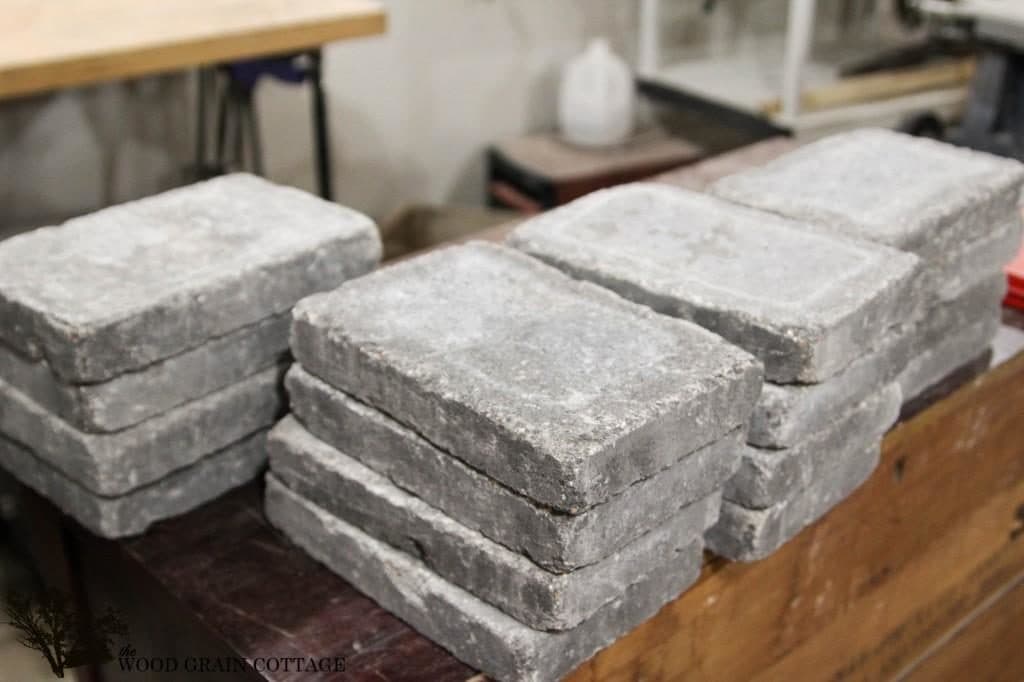 Нужно заготовить небольшие пеноблоки в виде брусчатки.