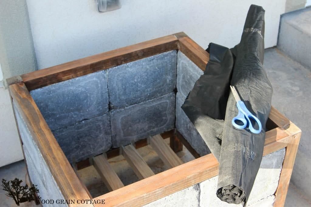 Прочный садовый вазон можно сделать из пеноблоков. Подобная композиция станет замечательным украшением для дворика или садовой территории. Необычный декор отлично дополнит зону отдыха. Крепкая ваза хорошо сочетается с другими предметами ландшафтного дизайна.