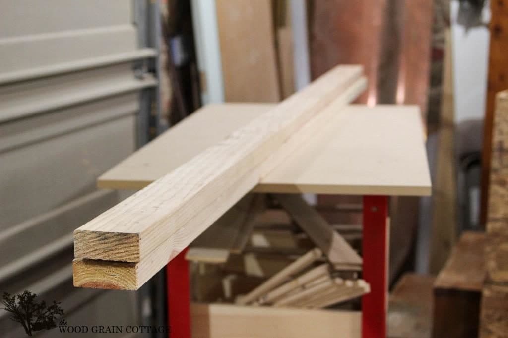 Добавляются все блоки. Затем клей распределяется по верхней доске. Брусок приклеивается и привинчивается.