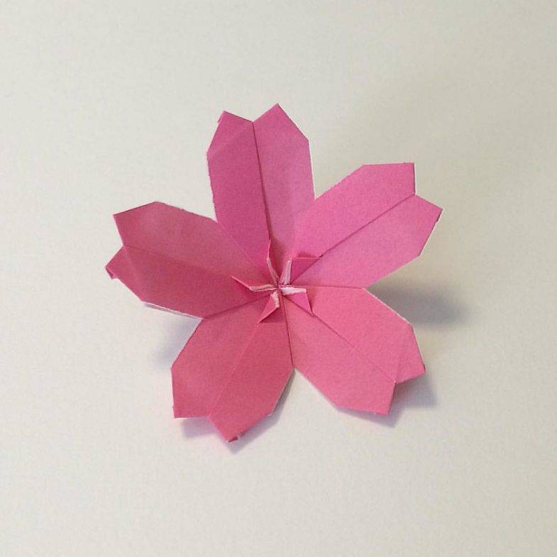 Переверните цветок на другую сторону, и ваше оригами сакуры готово!