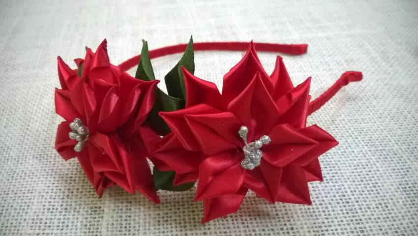 - Детские украшения. (Всевозможные обручи, заколки, резинки декорируют хорошо скрепленными цветами, чтобы при бурной деятельности малышки украшение не развалилось).