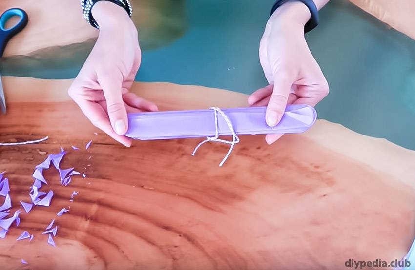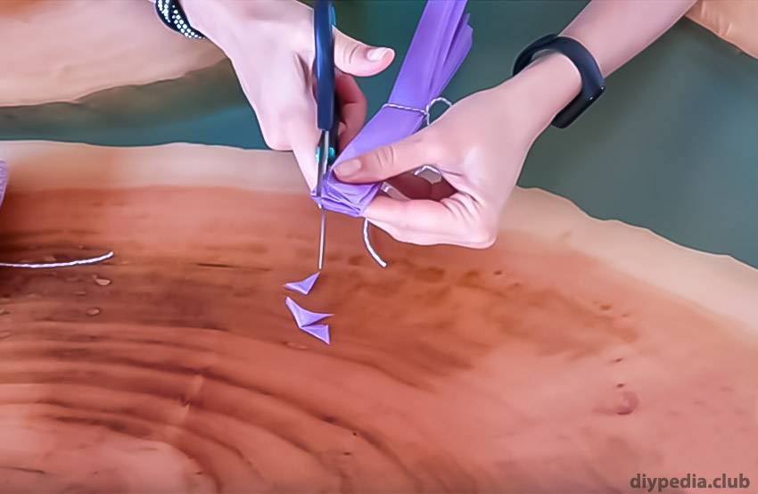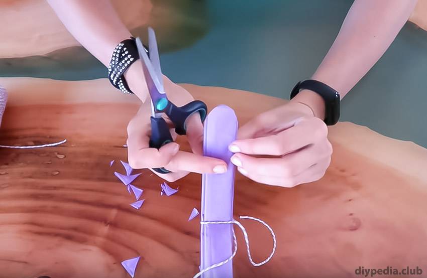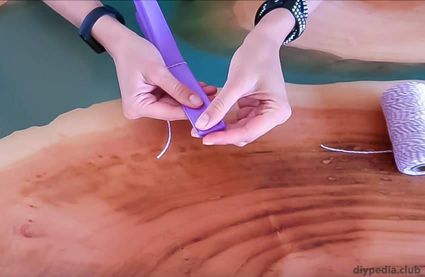 3. Отрезаем кусочек веревочки, ленточки, лески или нитки