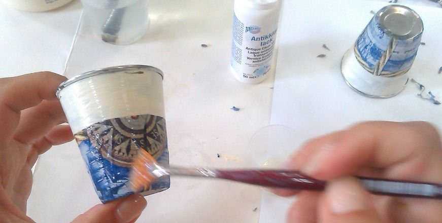 - Продолжая мастер класс, покроем декорируемое изделие кракелюрным лаком;