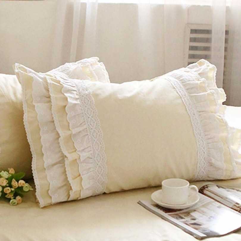 Теперь, когда наволочка готовка, можно приступать к декорированию ее кружевом. Как же пришить кружево на наволочку? Во-первых, кружево лучше постирать, так как часто после стирки оно дает усадку. После сушки и утюжки кружево пришивается к наволочке. Обычно это делается вручную. Кружево с повторяющимся рисунком можно пришивать бантовыми или обычными складками по периметру подушки. Кроме того, пришитое на лицевую сторону в виде затейливых бантиков, цветов и орнаментов оно очень украсит изделие. Если композицию дополнить бусинами, тесьмой, пуговицами или другой фурнитурой, то наволочка будет не просто одеждой для подушки, а предметом интерьера, который сделает неповторимой любую кровать.