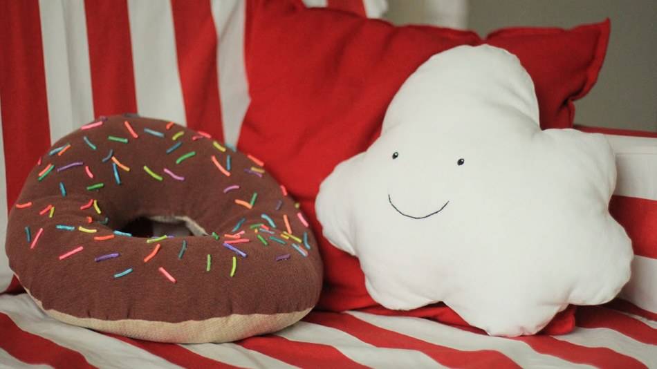 От подушек необычной формы без ума не только дети, но и взрослые. Многие любят украшать свое жилье прикольными, необычными, креативными вещами. Здорово смотрятся подушки в виде пончиков, со смайликами и др. Фантазии нет предела, можно сделать подушку в любой форме, любой расцветки. А наши идеи послужат вам для вдохновения.