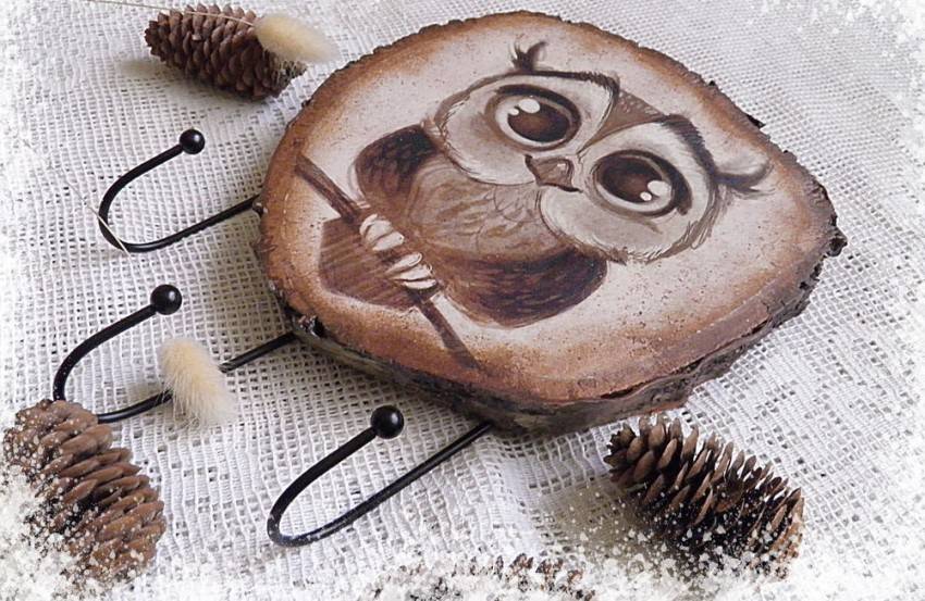 Перед декорированием поверхность ключницы понадобится обработать: выровнять с помощью наждачной бумаги и покрыть любой подходящей краской. Можно сделать объемные детали с помощью дополнительных материалов – пластилина, глины. Сверху приклеиваются картинки и получается реалистичная интересная картинка.