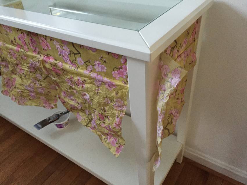 Декупаж мебели обоями своими руками проводится в несколько этапов. Каждый из них имеет свою значимость, и никакой нельзя пропускать.