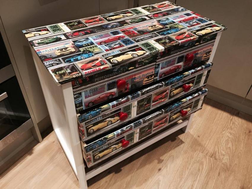 Выбор может быть огромным. Чаще всего мастера используют специальную бумагу либо карты. Они продаются в специализированных магазинах. Выбор расцветок просто огромен. Он позволяет выбрать для обработки наиболее подходящий вариант. К примеру, для декупажа кухонной мебели своими руками можно взять бумагу с фруктами либо красивыми блюдами, а для комода в рабочем кабинете отлично подойдут карты либо расцветки с марками.
