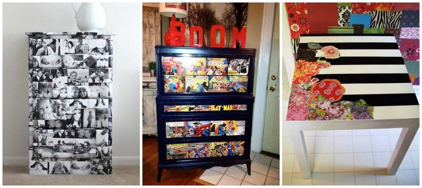 Выбор материалов для декупажа мебели своими руками просто огромен. То есть любую задумку мастера можно воплотить в жизнь, используя один или несколько вариантов.