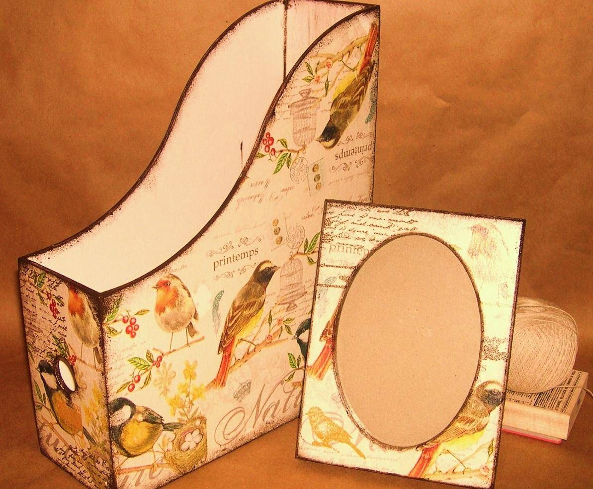 Декупаж журнальницы стоит выполнять в соответствии со стилем интерьера, в котором она будет расположена
