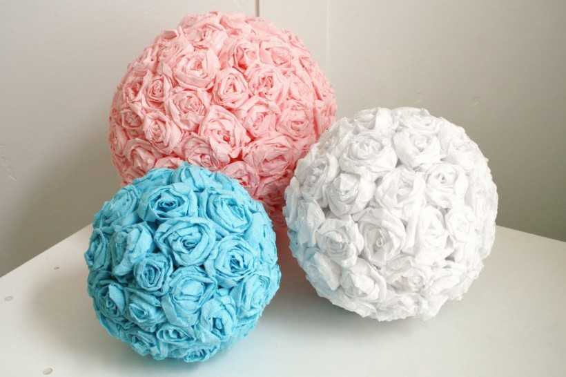 Бумажные салфетки – многовариантный декор, из них можно изготавливать не только объемные розочки. Вы можете просто красиво оклеить, вспомнив тот же декупаж, шар-основу салфетками, соблюдая некий рисунок. И это тоже красиво! Пробуйте, экспериментируйте, создавайте свое деревце счастья.