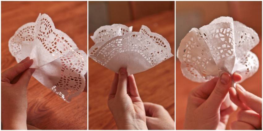 * Как и в первом случае, салфетку нужно сложить пополам по диагонали.