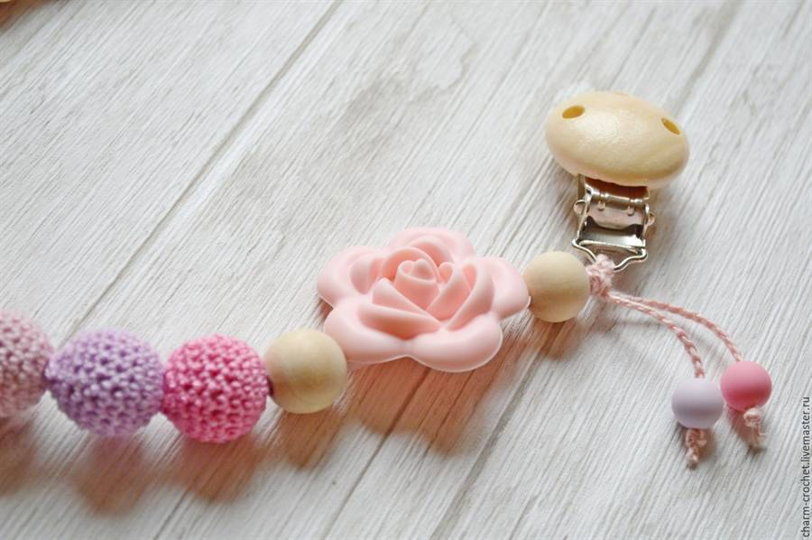 Самый простой способ успокоить малыша – дать ему пустышку, однако многим мамам знакома ситуация, когда эта необходимая вещица потерялась или упала на улице. Застраховаться от таких курьезов можно, если обзавестись специальным держателем-прищепкой для пустышки, в мастер-классе же мы покажем, как такую вещь можно сделать стильной и оригинальной. Итак, как же можно связать держатель для пустышки своими руками?