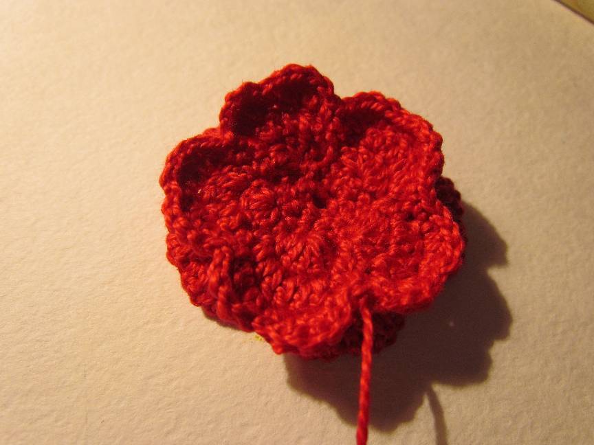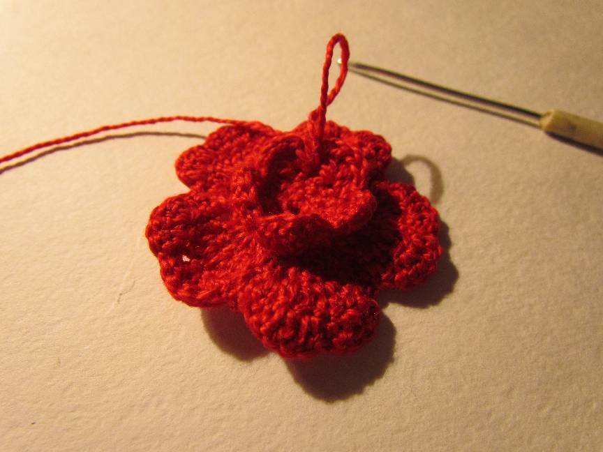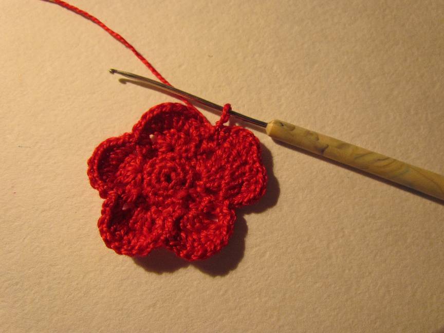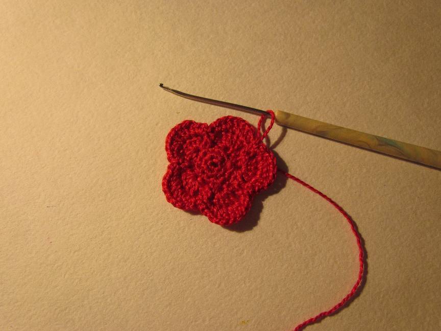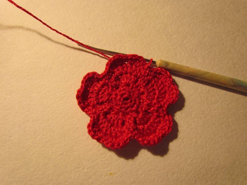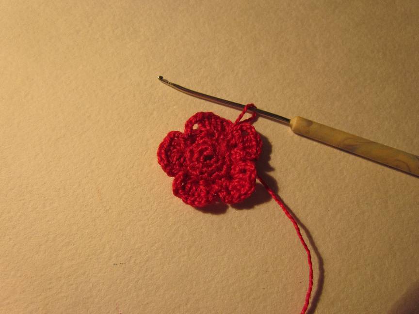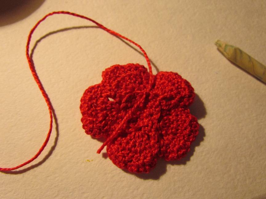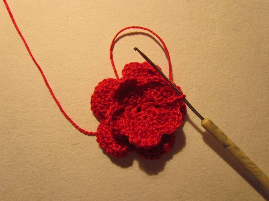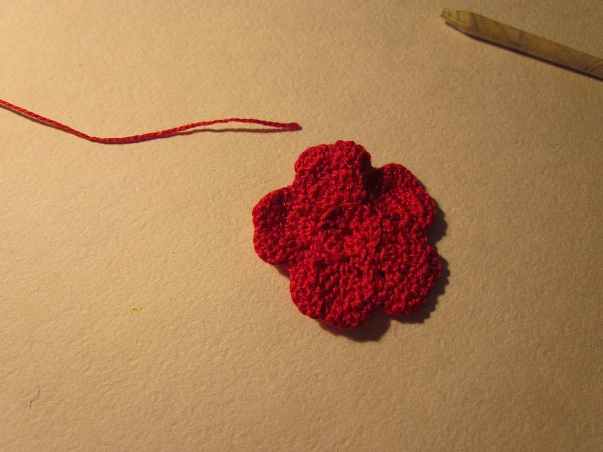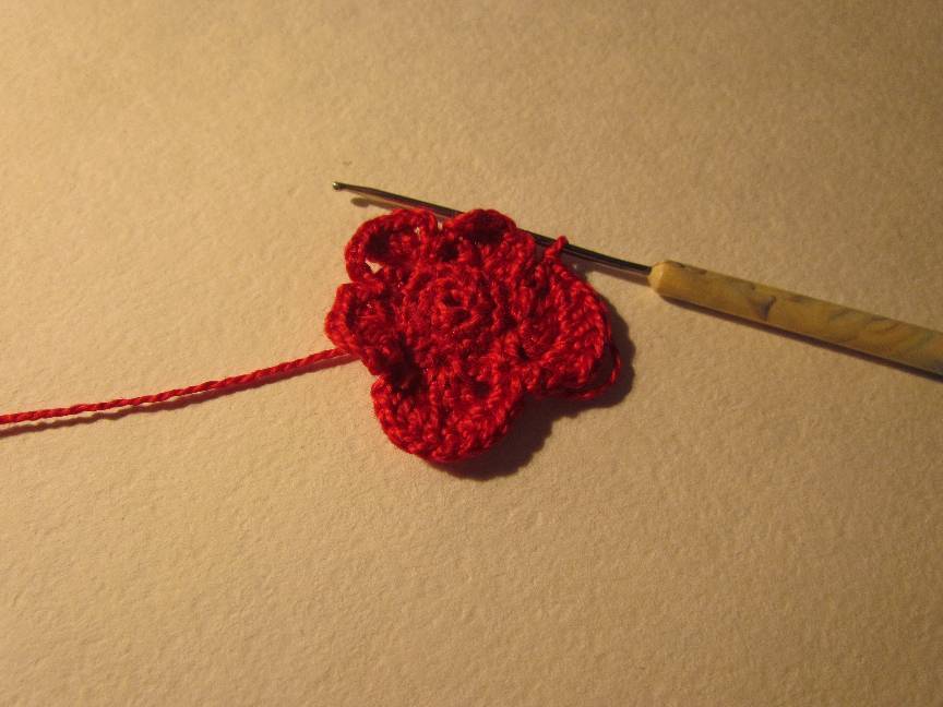 - Когда будете вязать последний Р, сделайте так: провяжите СБН, 2 СН, 3 С2Н, 2 СН, СБН, соединительный С. Обрежьте нитку, закрепите ее.
